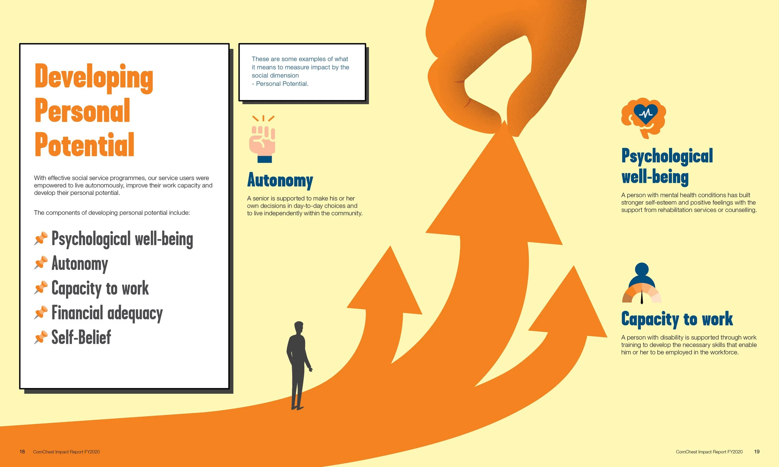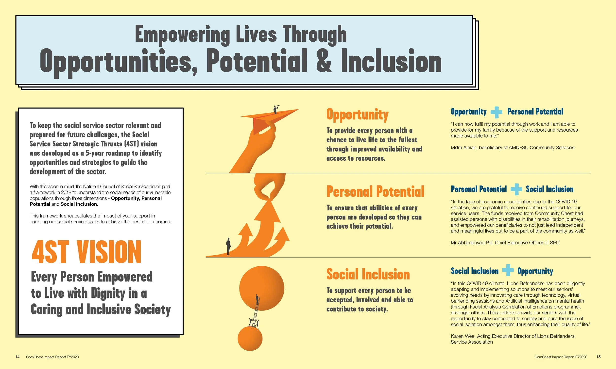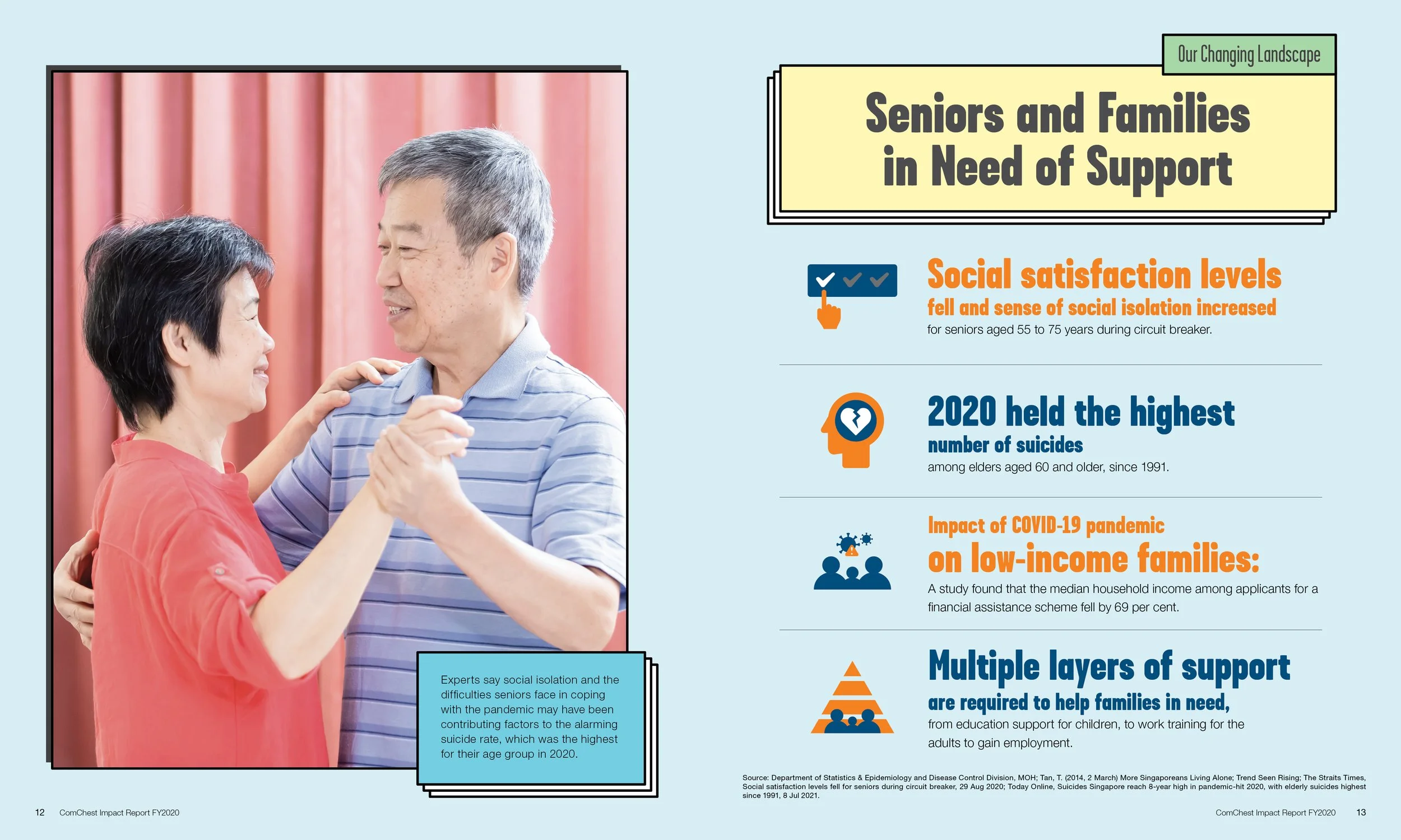 The 2020 NCSS Singapore Impact Report is centered around the theme “Stepping Up for Others,” highlighting the importance of community support and mutual understanding, especially during the COVID pandemic.