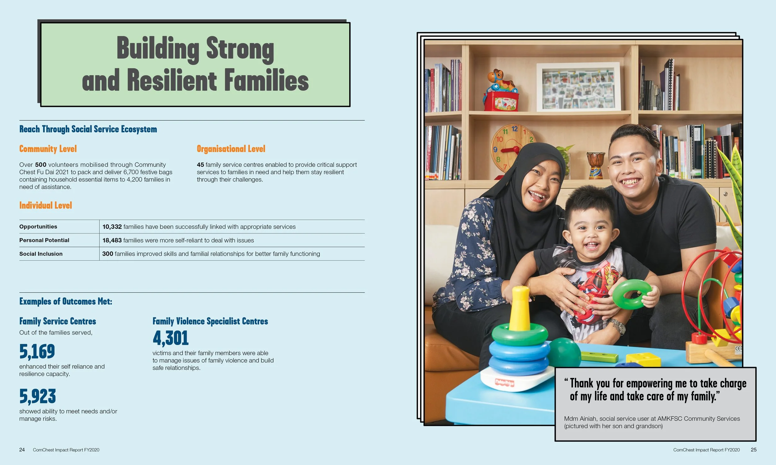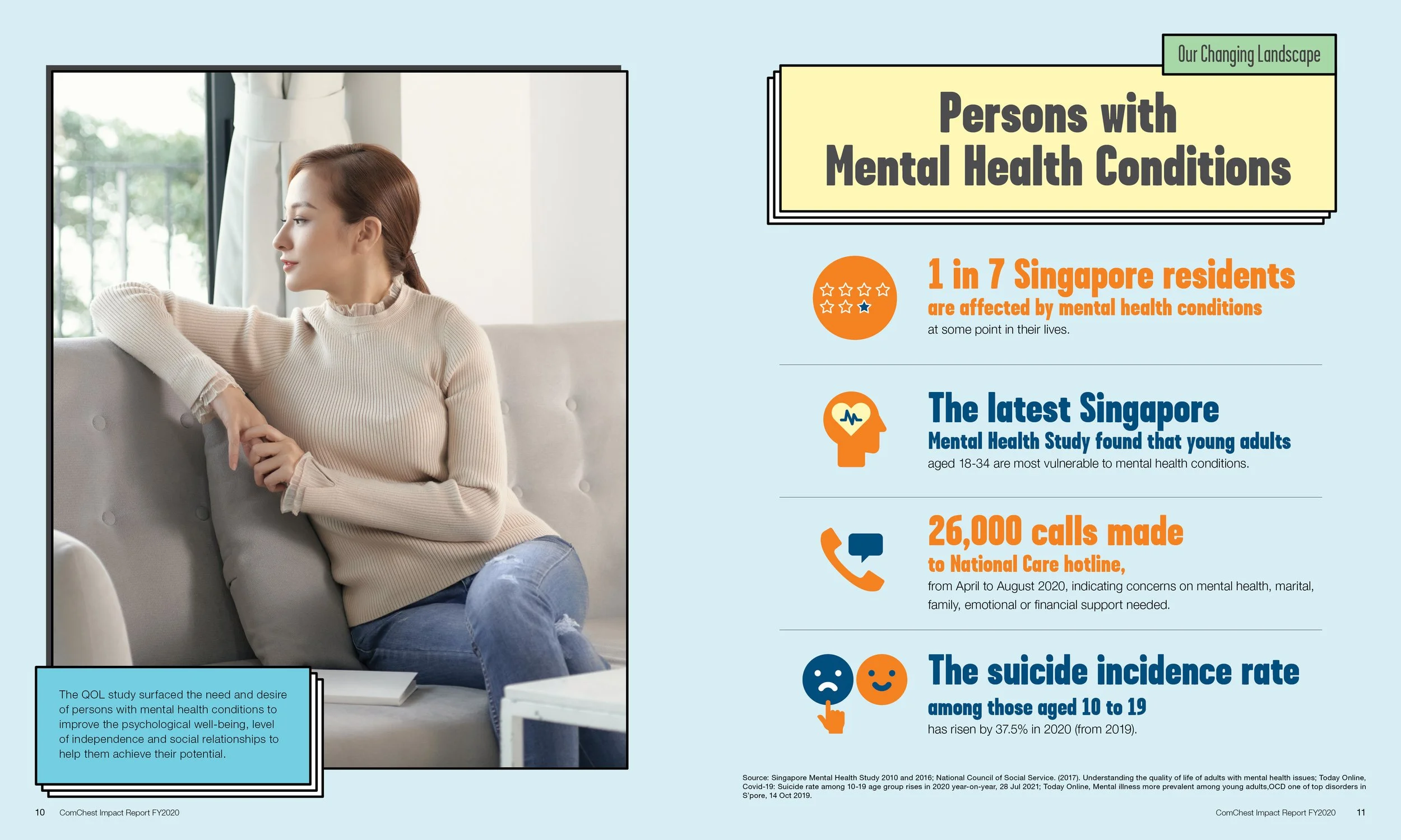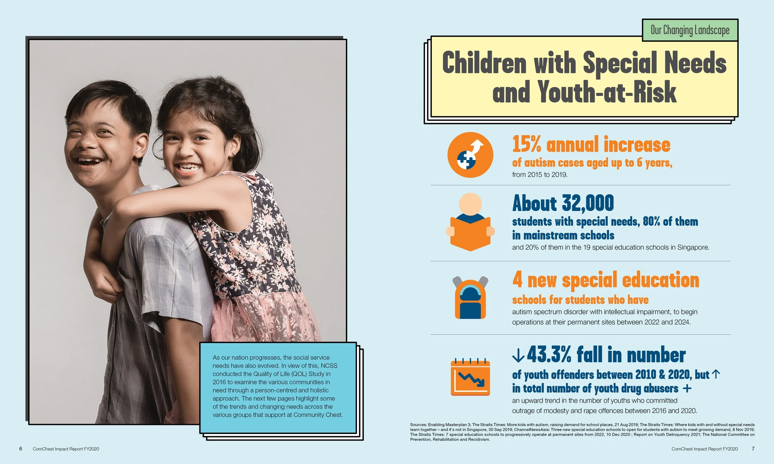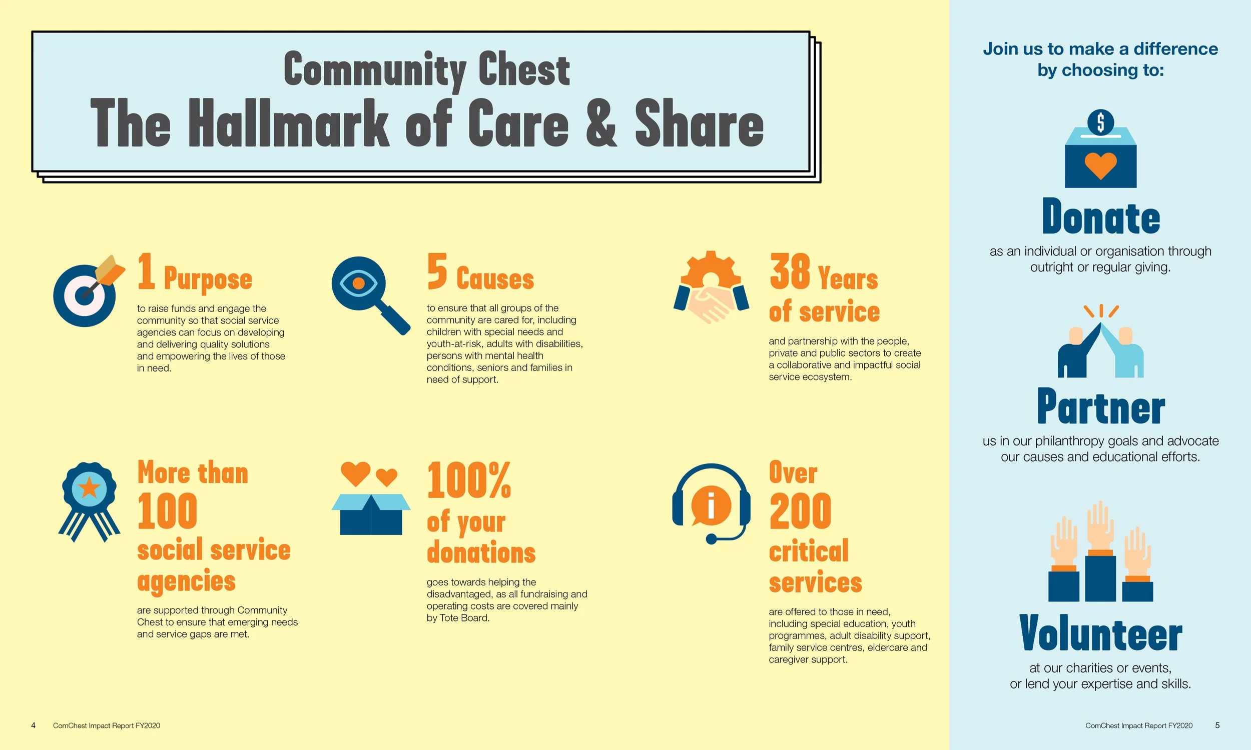 The 2020 NCSS Singapore Impact Report is centered around the theme “Stepping Up for Others,” highlighting the importance of community support and mutual understanding, especially during the COVID pandemic.