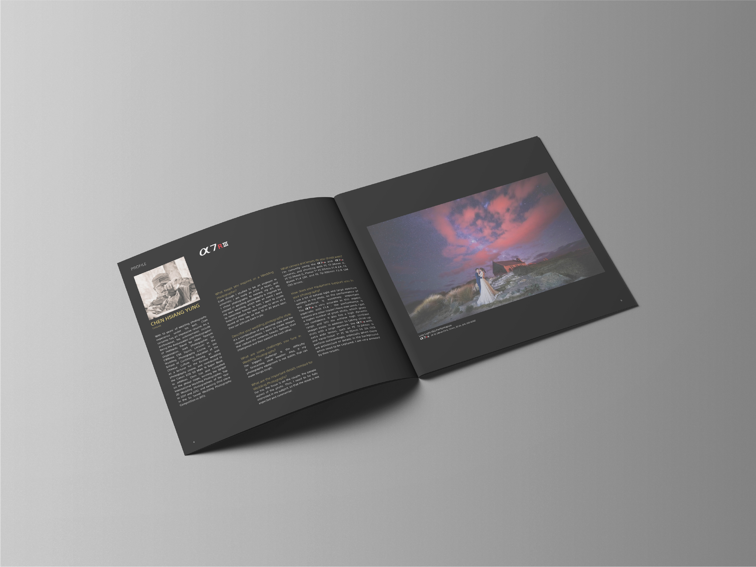 Direction: Seamlessly curated layouts to feature works from various photographers, emphasizing the timeless beauty of weddings without spotlighting individual contributions.Music Player Product Brochure