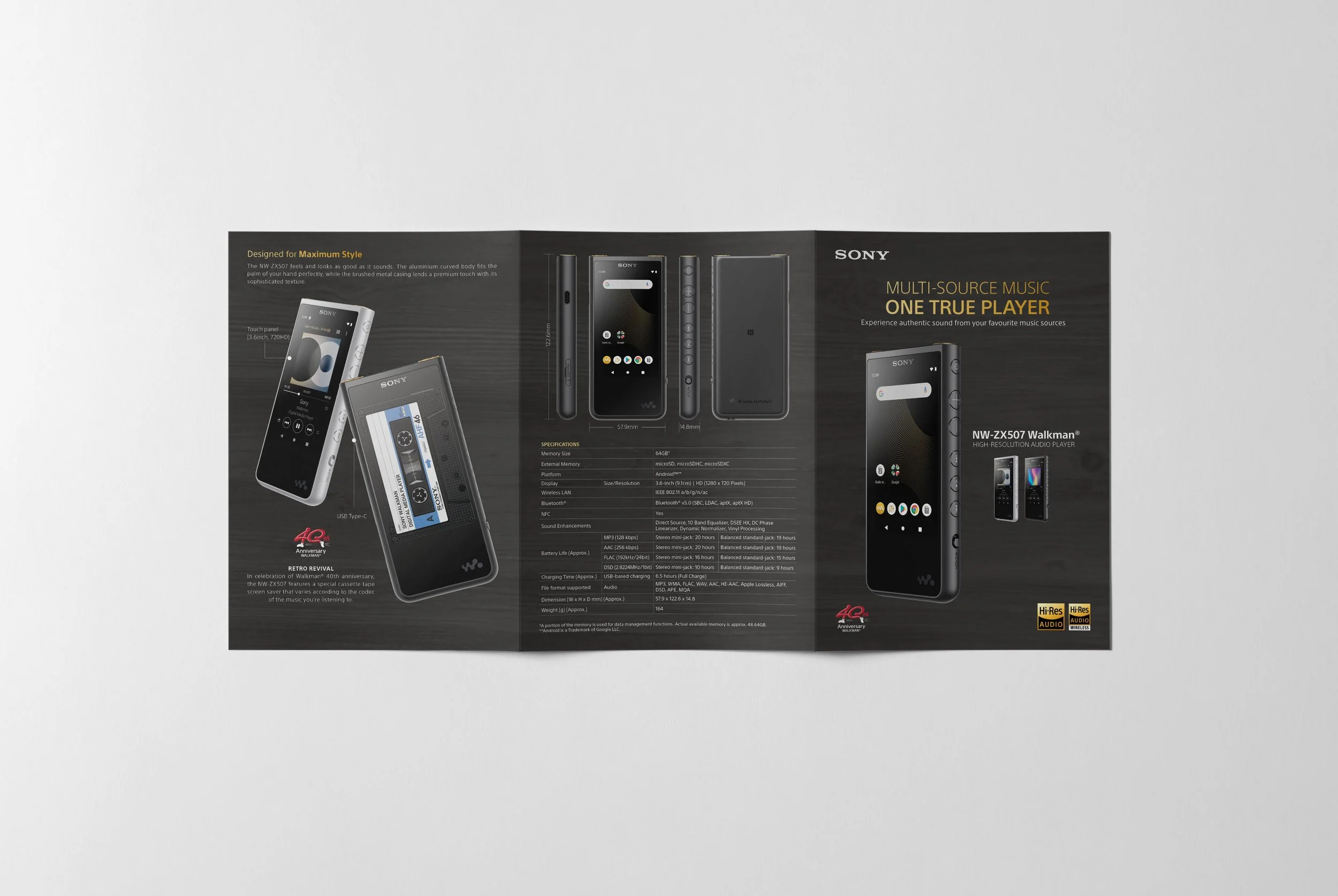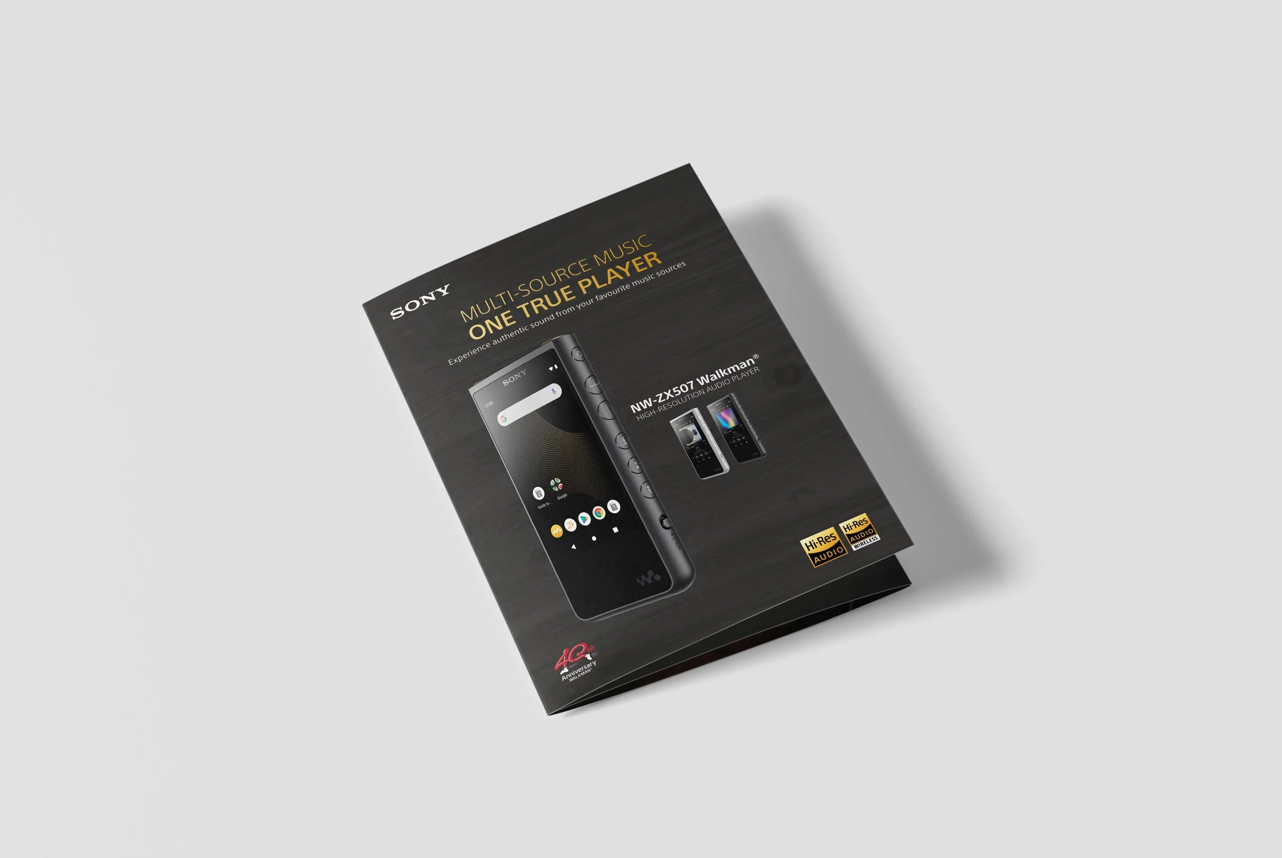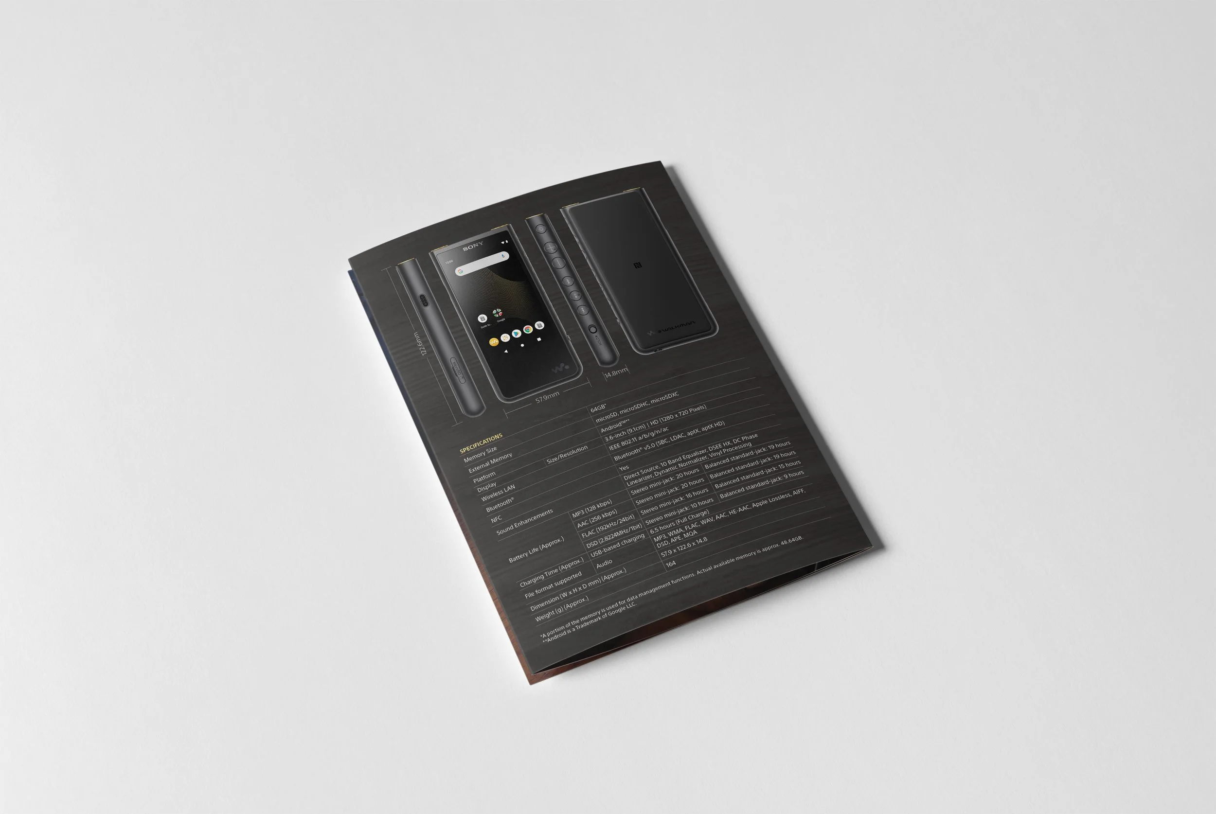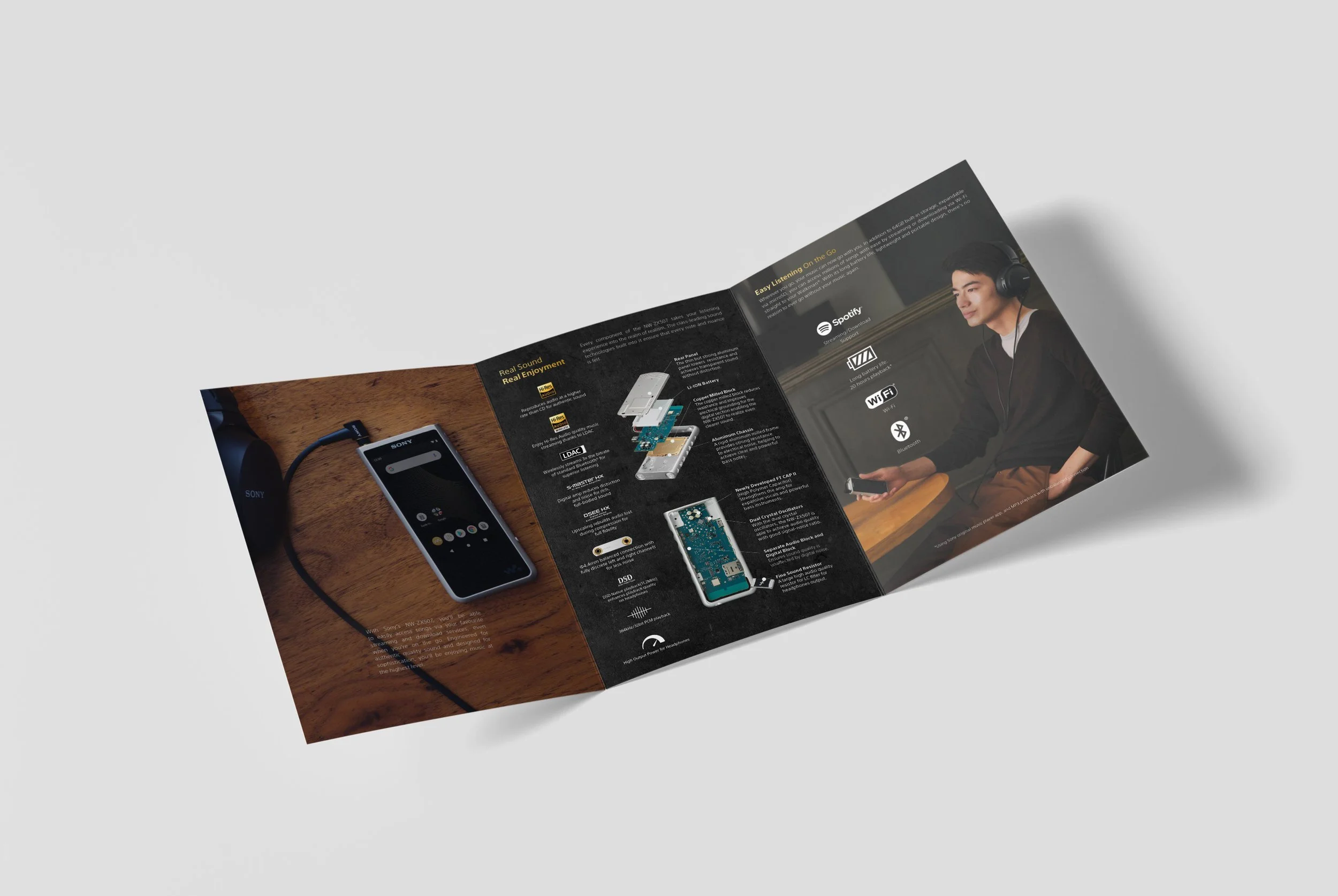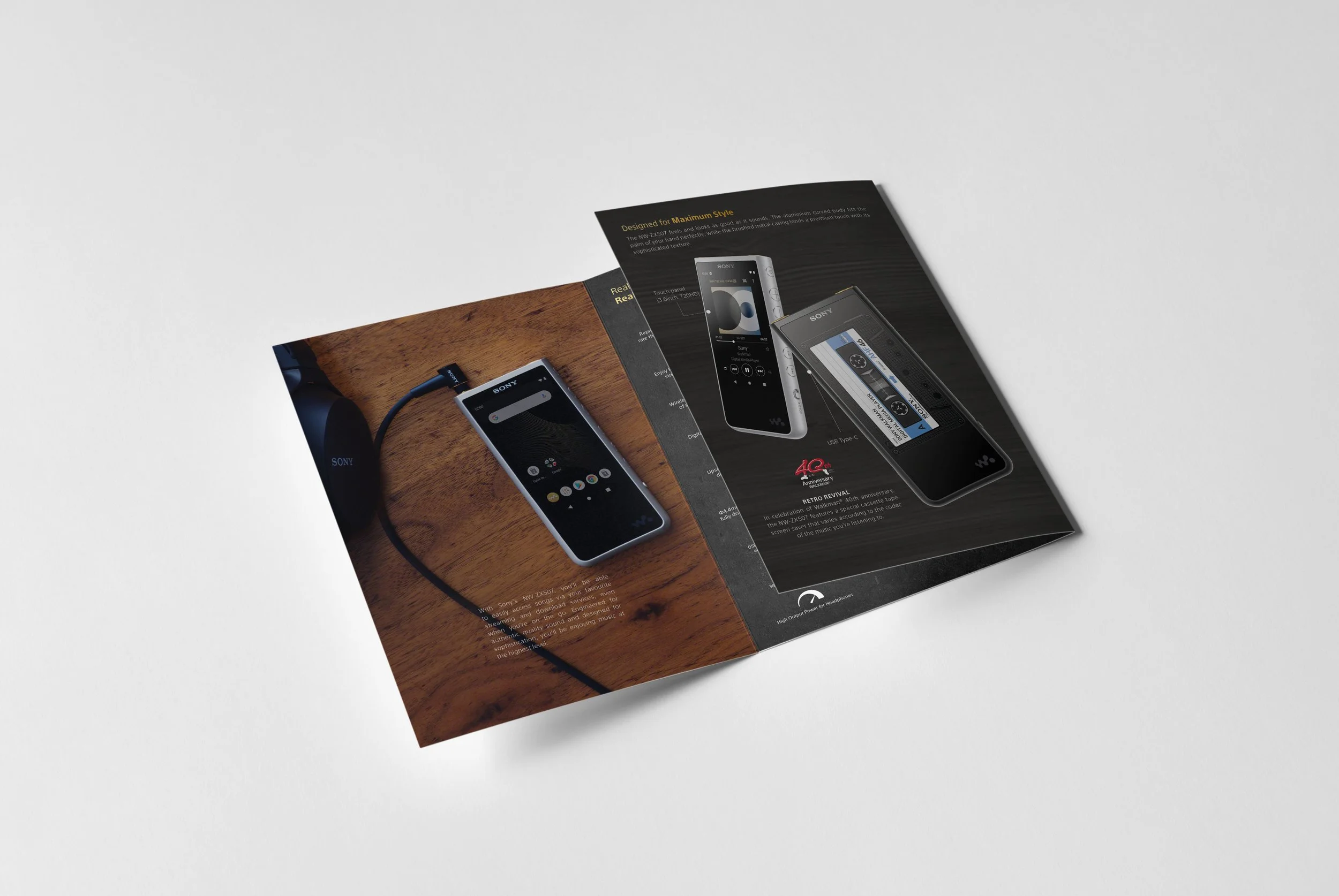 Direction: A promotional piece introducing the high-end Walkman MP3 player. The design exudes a casual yet premium aesthetic, aligning with the product's luxurious appeal.Media Receiver Product Catalogue